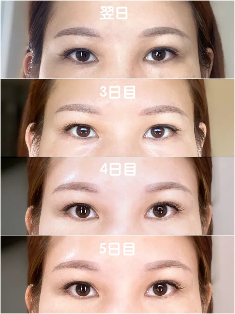 施術直後から2〜3日は赤みや腫れが出やすく、3〜7日前後でかさぶたができ、自然に剥がれ落ちます。