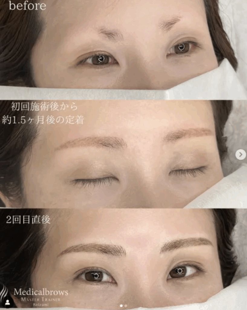 - 「施術直後」と「定着後(1〜2ヶ月後)」の両方の写真があるか
